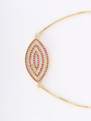 Gold & Purple Brass Cubic Zirconia Gold-Plated Handcrafted Charm Bracelet