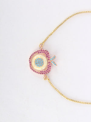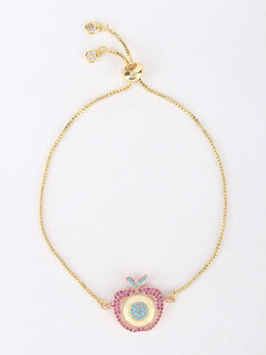 Gold & Purple Brass Cubic Zirconia Gold-Plated Handcrafted Charm Bracelet