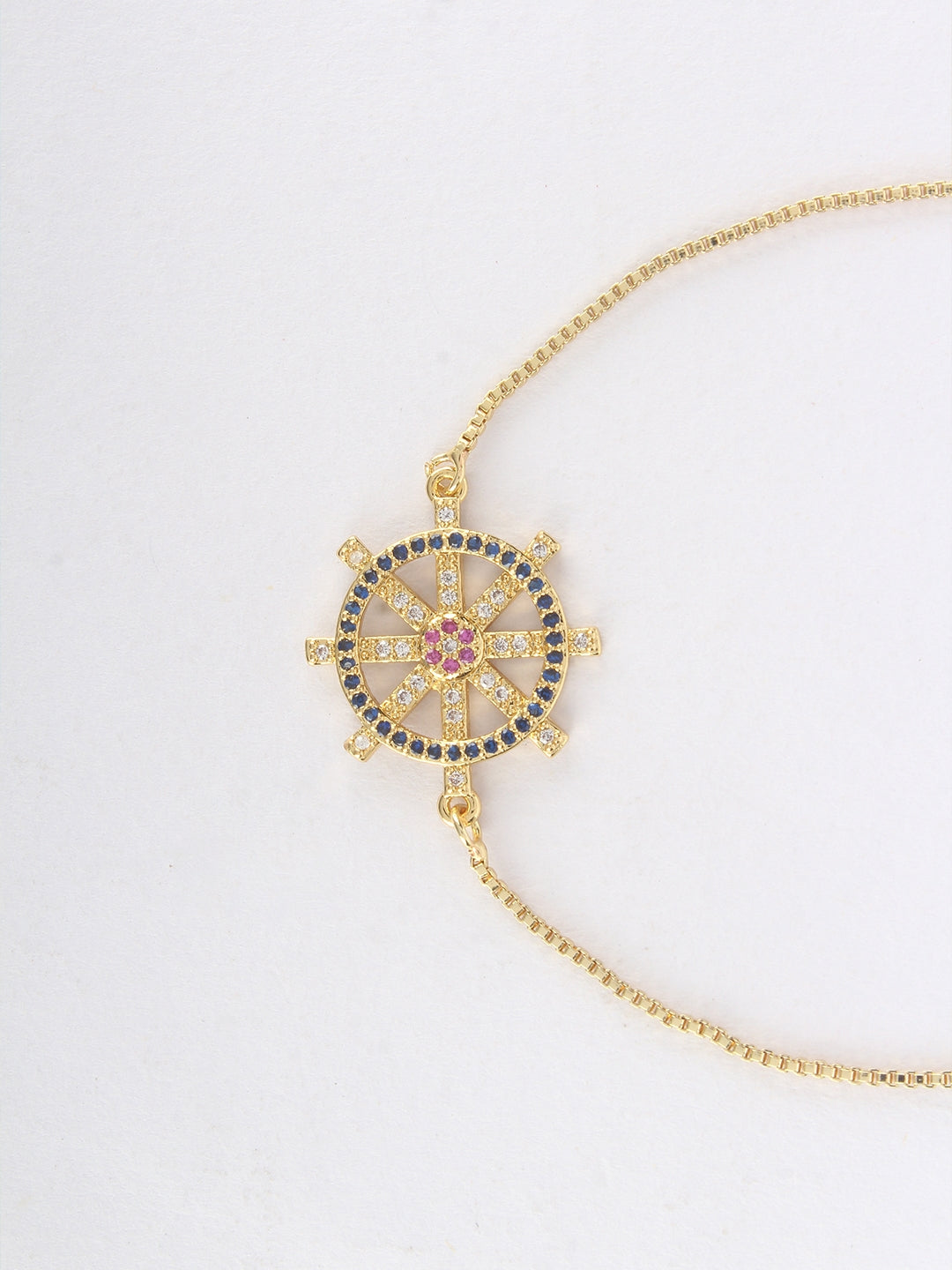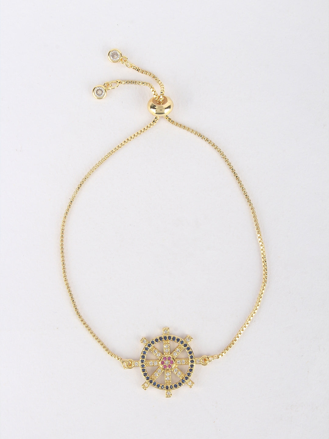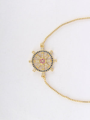 Rose Gold & Navy Blue Brass Cubic Zirconia Rose Gold-Plated Handcrafted Charm Bracelet