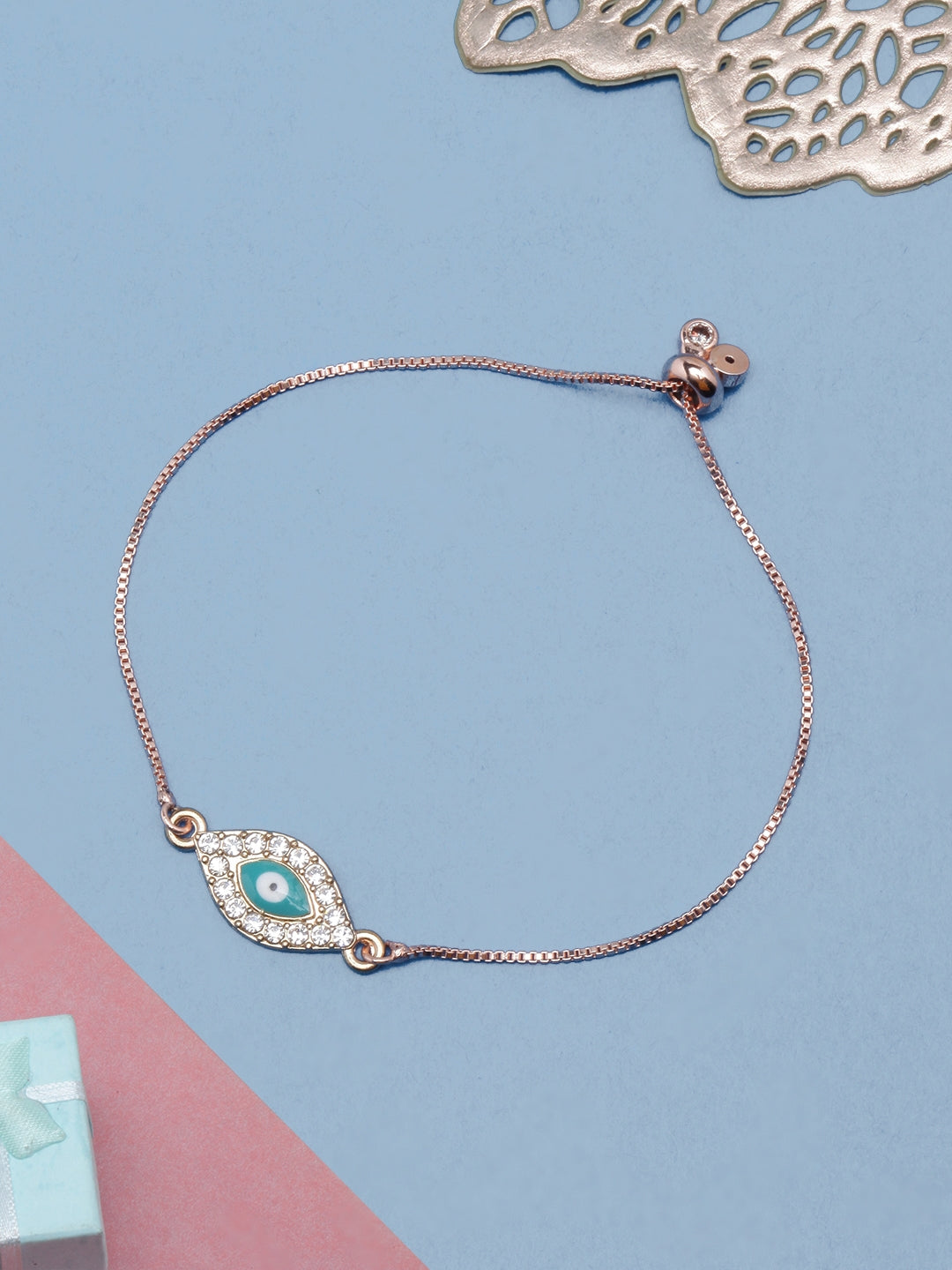 Rose Gold-Plated Blue & White Enamelled Bracelets
