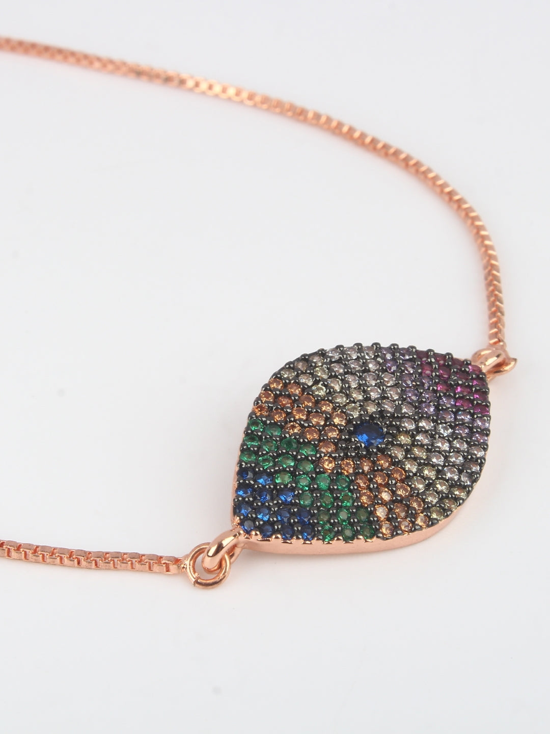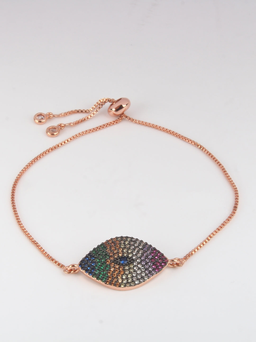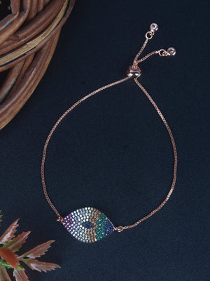Rose Gold-Plated Rose Gold & Multi Cubic Zirconia Studded Brass Charm Bracelet