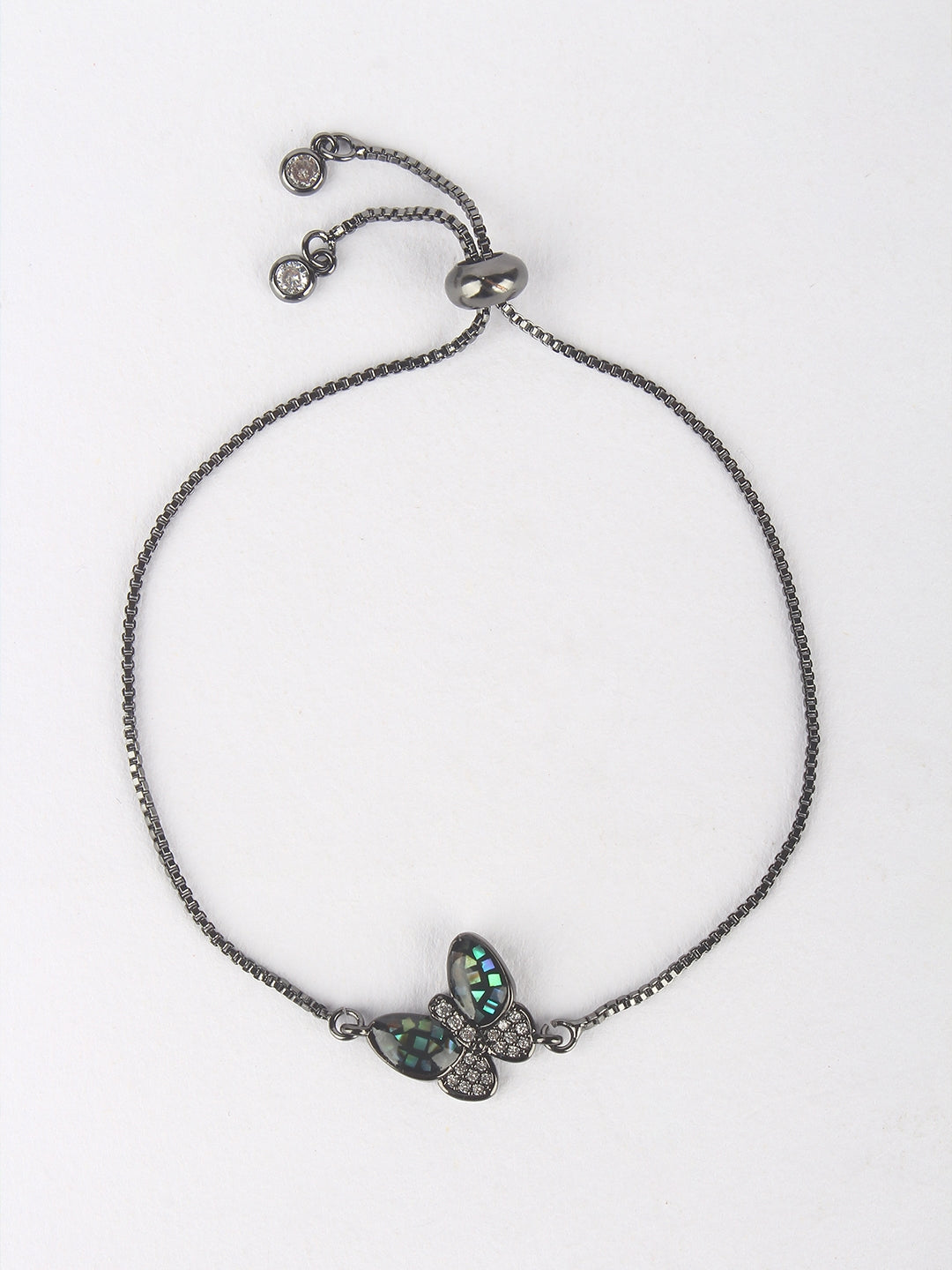 Black & Blue Brass Cubic Zirconia Brass-Plated Handcrafted Charm Bracelet