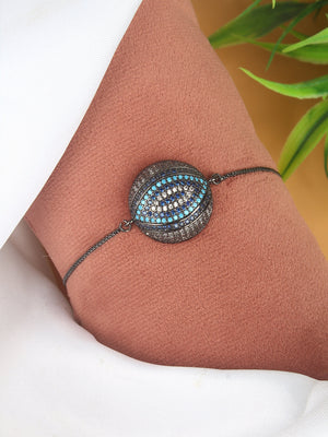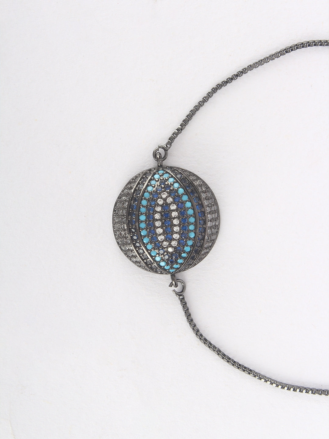 Black & Blue Brass Cubic Zirconia Brass-Plated Handcrafted Charm Bracelet