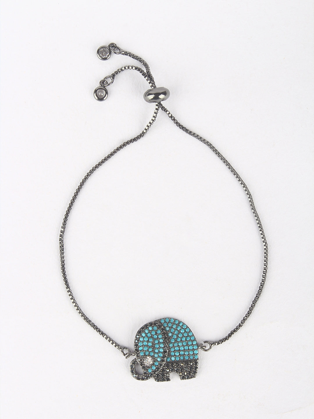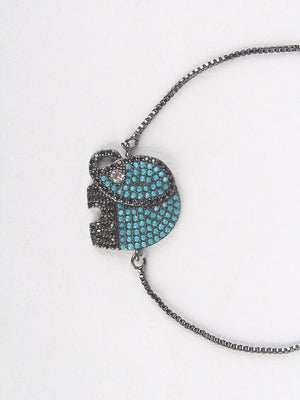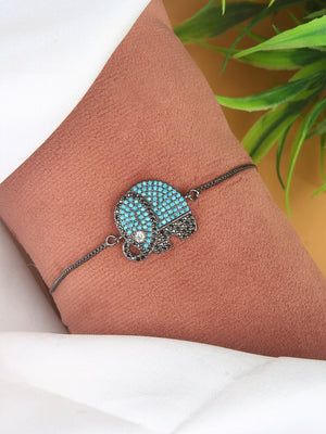 Black & Blue Brass Cubic Zirconia Brass-Plated Handcrafted Charm Bracelet
