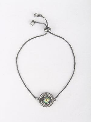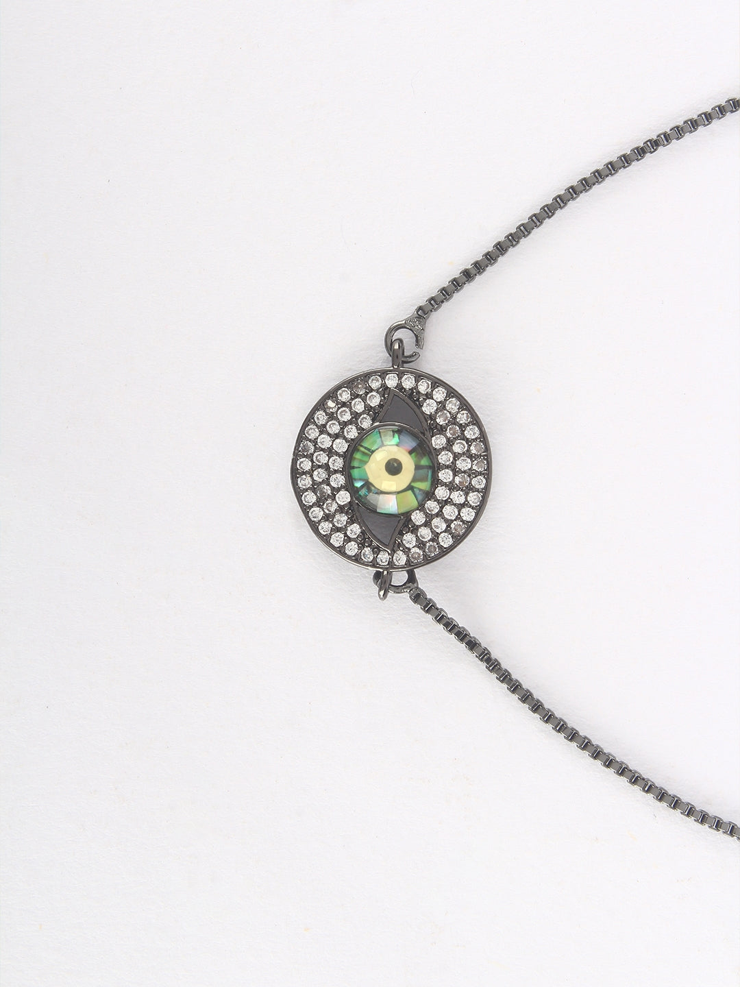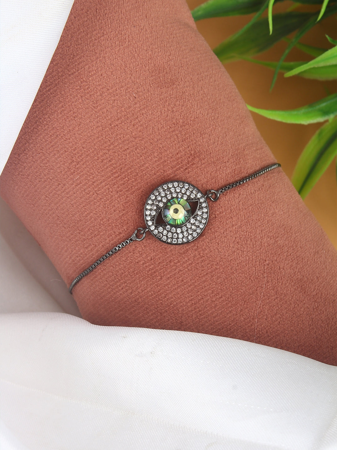Black & Green Brass Cubic Zirconia Brass-Plated Handcrafted Charm Bracelet