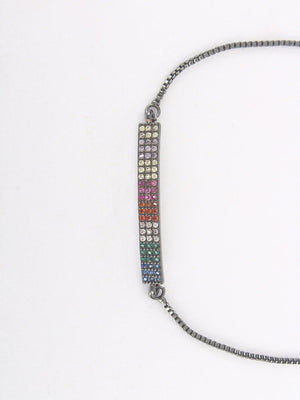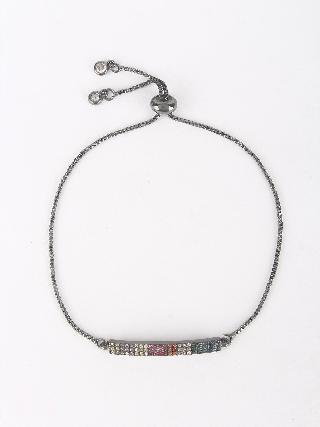 Black & Multi Brass Cubic Zirconia Brass-Plated Handcrafted Charm Bracelet