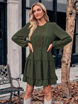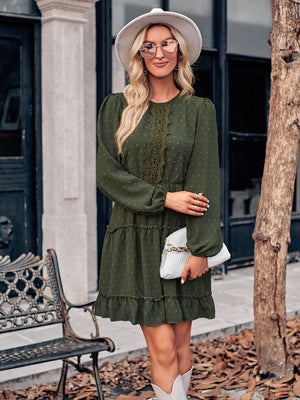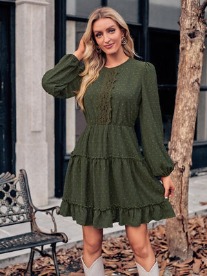 This elegant A-Line dress is made from high-quality green polyester, perfect for any occasion. The flattering silhouette and versatile color make it a must-have in any wardrobe. The dress features a classic round neck neckline and a comfortable fit that will make you feel confident and stylish.
