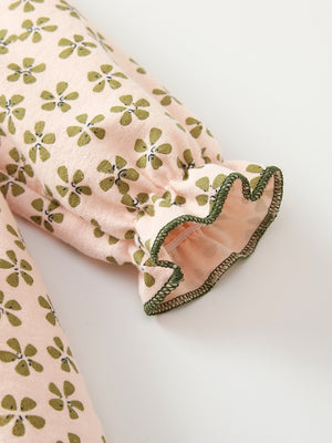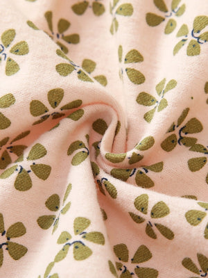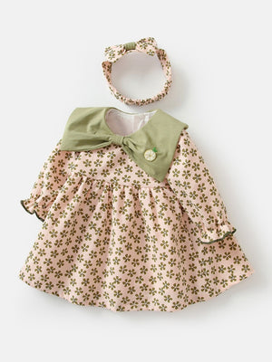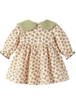 Green A-Line Round Neck Floral Long Sleeves Cotton Dress