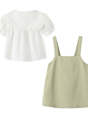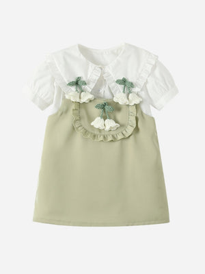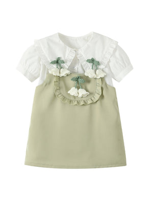 Green A-Line Round Neck Solid Short Sleeves Cotton Dress