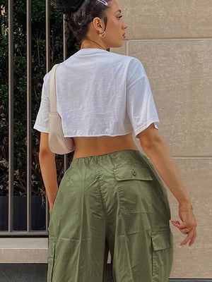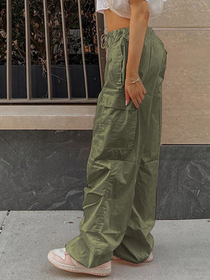Add a fresh vibe to your outfit with these green baggy trousers, featuring a loose fit for a relaxed feel.