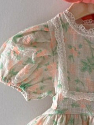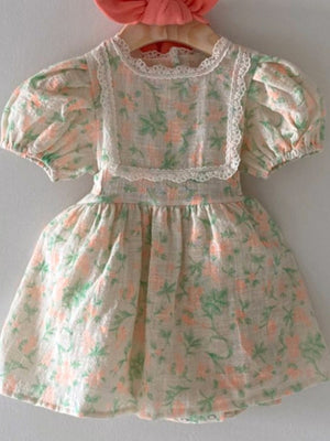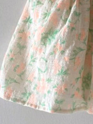 Green Boat Neck Casual A-Line Floral Short Sleeves Knee Length Cotton Dress