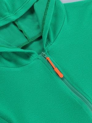 Green Hood Neck Solid Long Sleeves Viscose Top