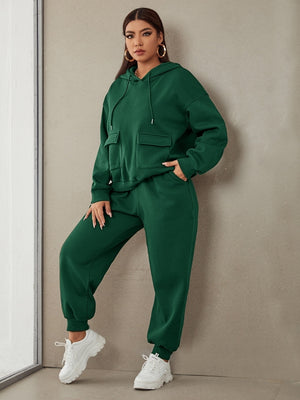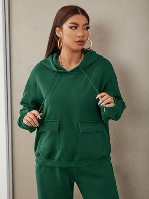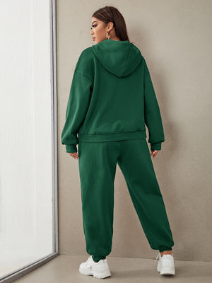 Green Hood Polyester Long Sleeves Solid Top & Trousers Set