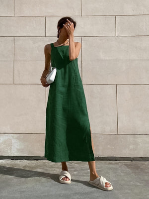 Effortless and modern, our Green Linen Slip Midi Dress is the ultimate warm-weather essential. Featuring clean lines, wide shoulder straps, and a relaxed straight silhouette, this dress combines minimalist style with everyday comfort.
