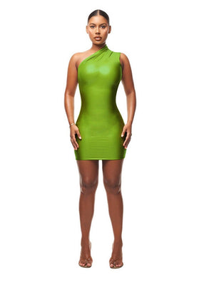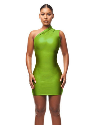 This Green One Shoulder Bodycon Sleeveless Solid Above Knee Polyester Dress is ideal for any special event. The elegant design and bodycon fit highlight your curves, with the details adding a touch of allure. Crafted from high-quality polyester fabric, this dress is both comfortable and chic.