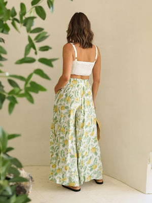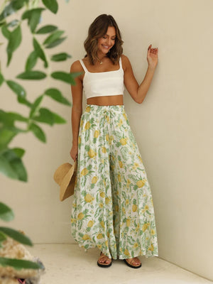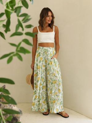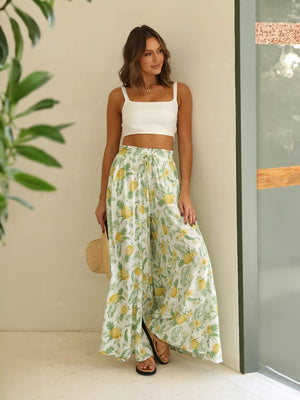 Green Printed Wide Leg Elasticated Slip-On Palazzo