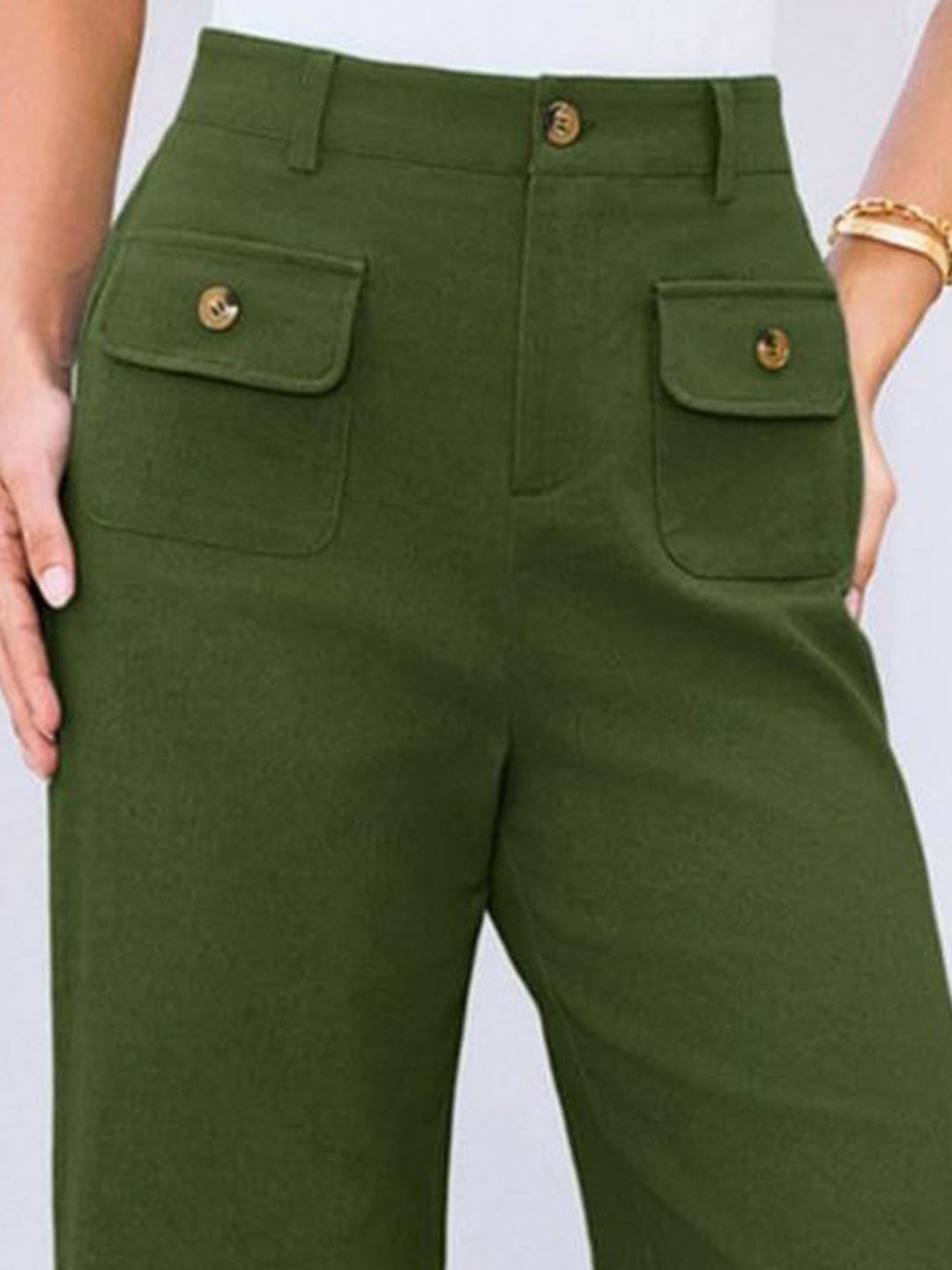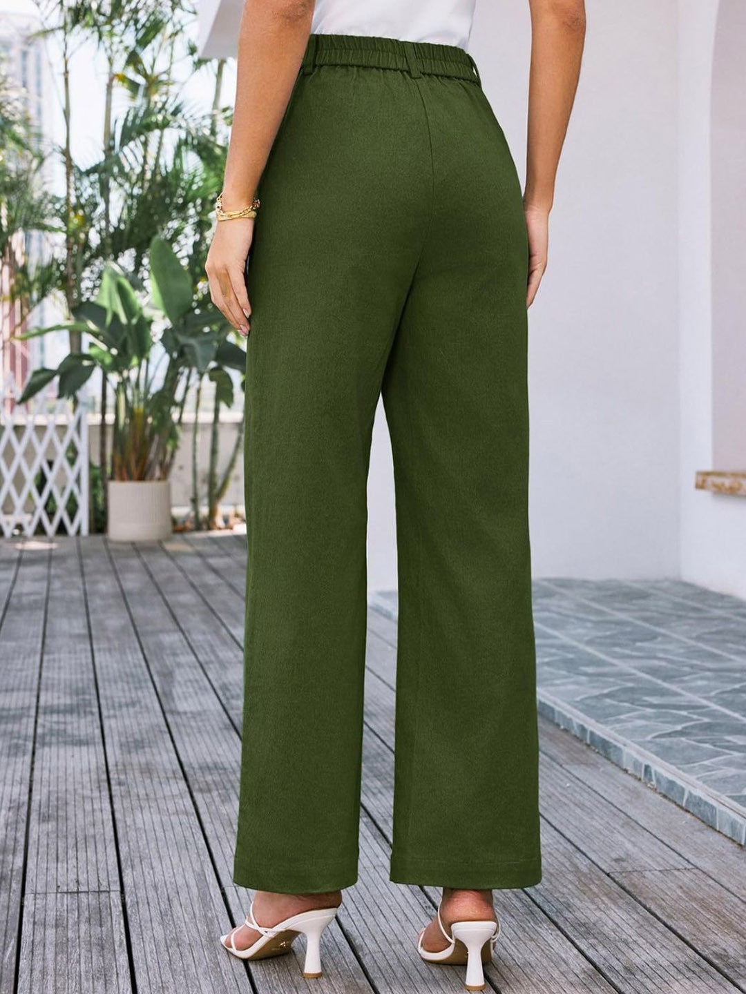 Green Regular Fit Solid Polyester Trouser