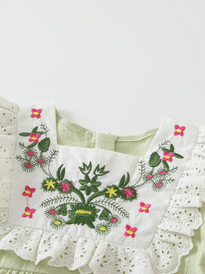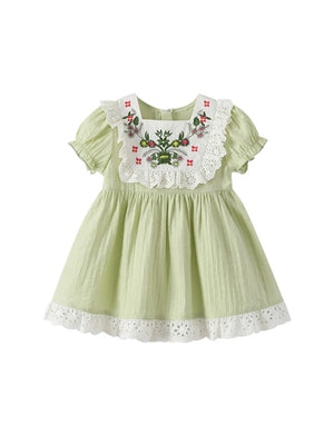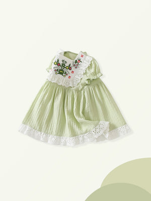 Green Round Neck Floral A-Line Short Sleeves Viscose Rayon Knee Length Dress