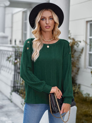 Introducing our Green Round Neck Long Sleeve Polyester Top, a stylish and versatile addition to your wardrobe. Made from high-quality polyester fabric, this top offers a comfortable and breathable fit. The round neck design adds a touch of elegance, while the black color provides a timeless and sophisticated look.