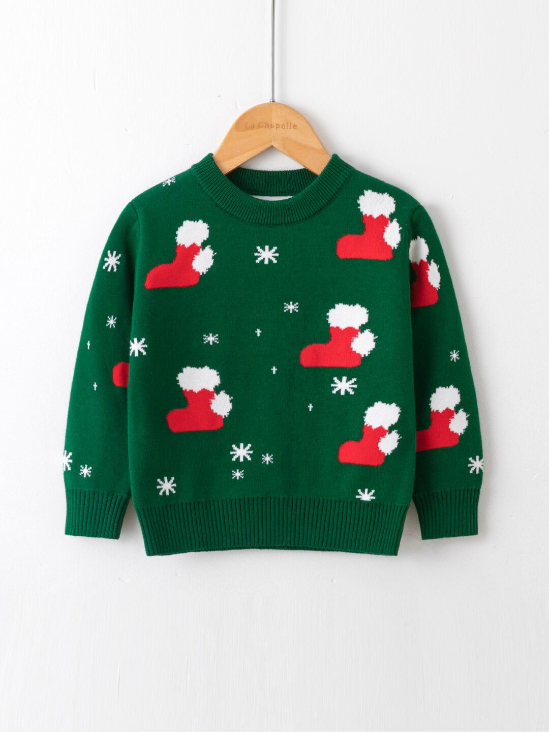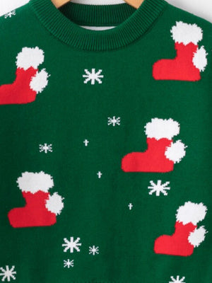 Green Round Neck Printed Long Sleeves Casual Pullover Viscose Rayon Sweater