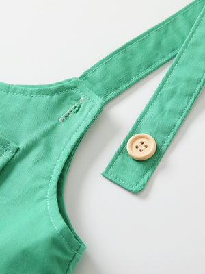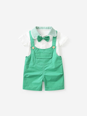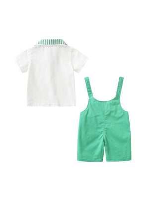 Green Shirt Collar Short Sleeves Solid Shirt & Shorts Pure Cotton Set
