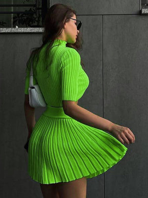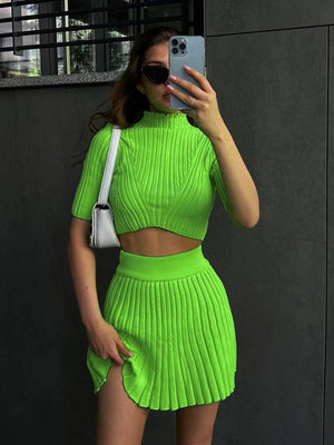 Stay stylish and comfortable in our Green Top & Skirt Polyester Clothing Set. Ideal for casual outings, it includes a chic green polyester top and a flattering skirt for a relaxed yet fashionable look.