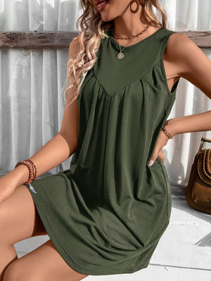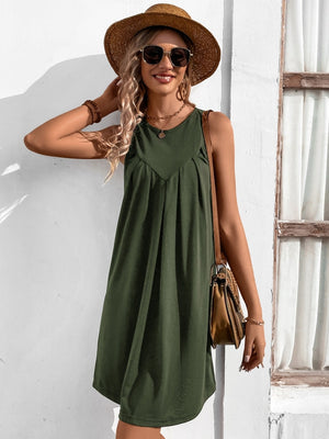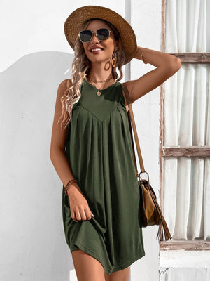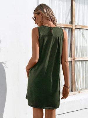 Green V-Neck Solid Sleeveless Knee Length A-Line Polyester Dress