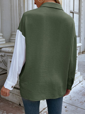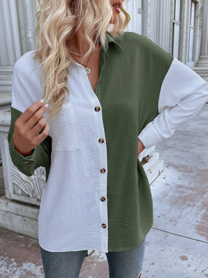 Green & White Shirt-Style Polyester Top