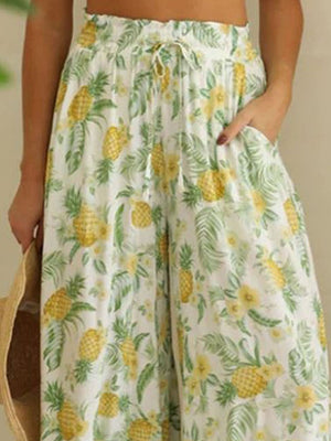 Green Loose Fit Printed Polyester Trouser