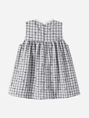 Grey A-Line Round Neck Checked Sleeveless Cotton Dress