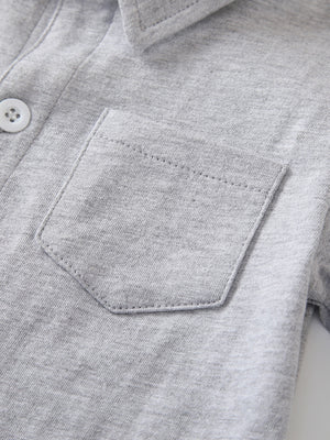 The Grey Cotton Kids Romper offers a sleek and modern look. Its neutral color and soft fabric make it suitable for any occasion.