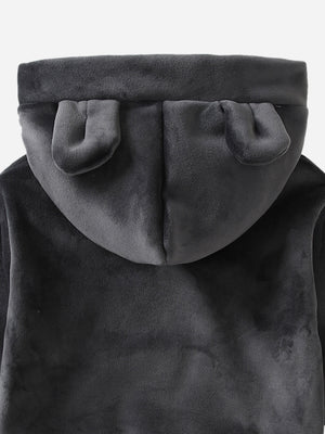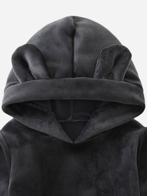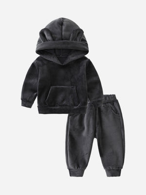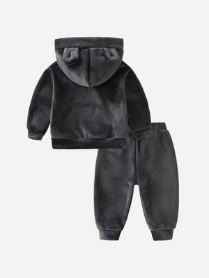 Grey Hood Long Sleeves Polyester Top & Trousers Set