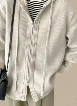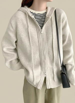Grey Hooded Long Sleeves Solid Acrylic Open Front Jacket