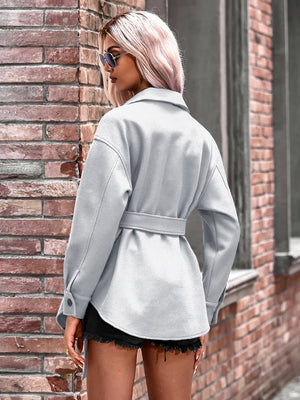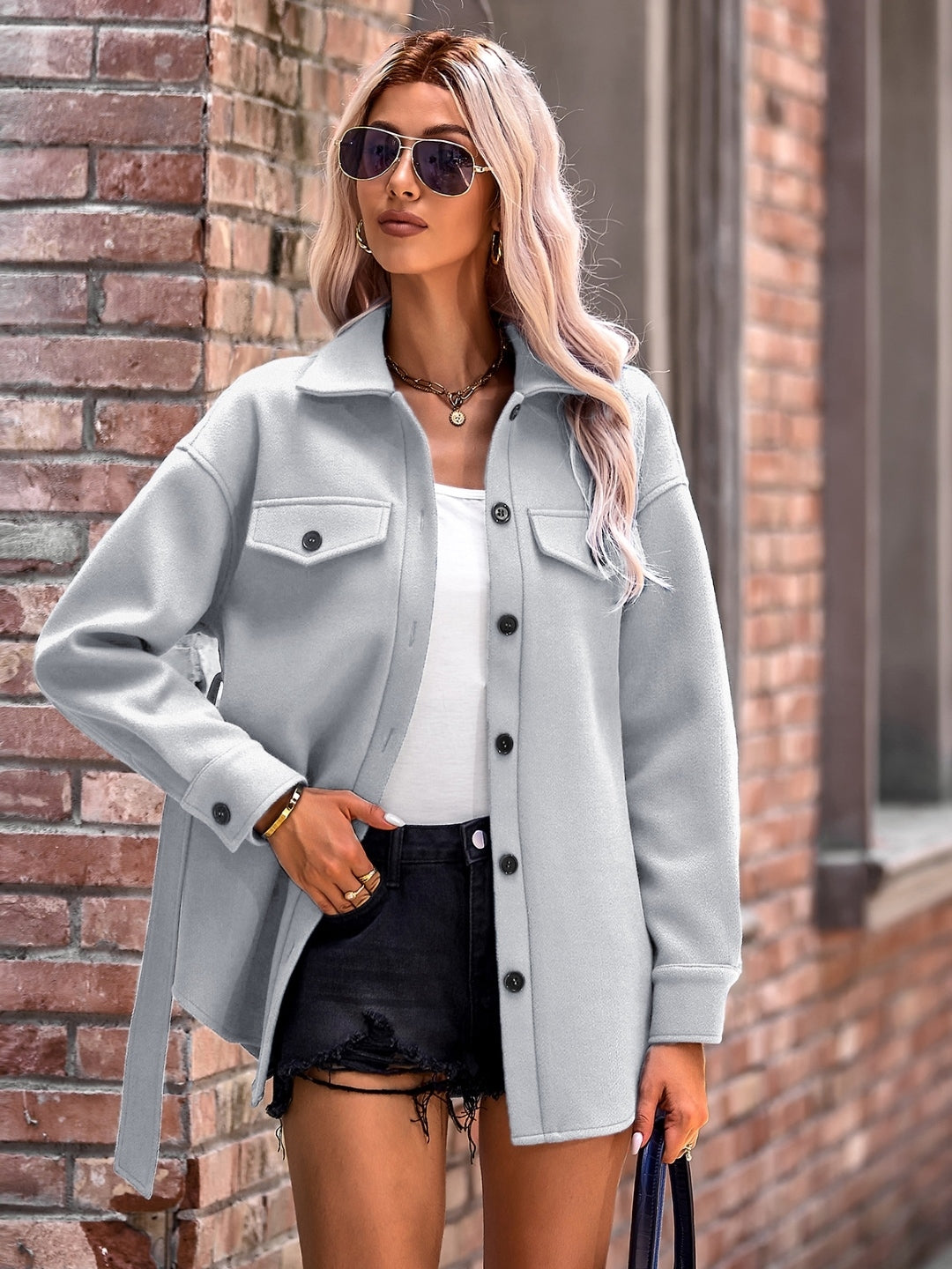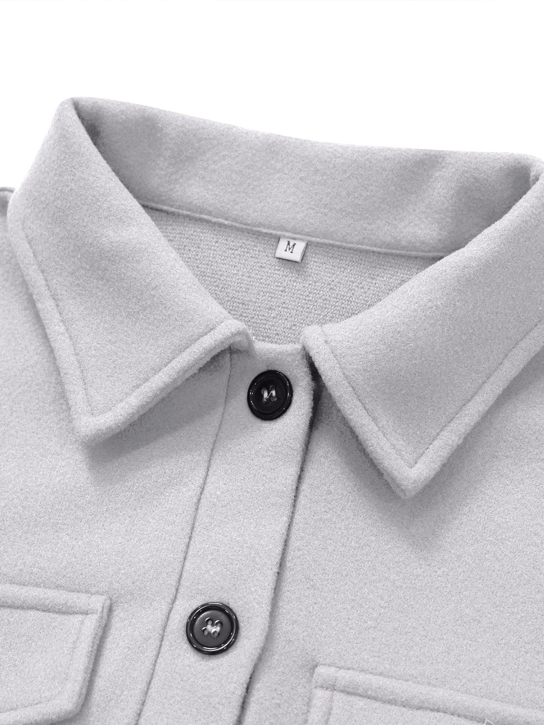 Grey Long Sleeve Shirt Collar Polyester Jacket