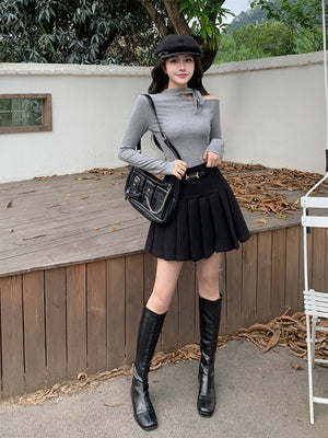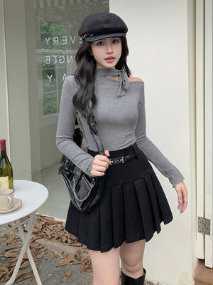 Grey One Shoulder Long Sleeve Viscose Top