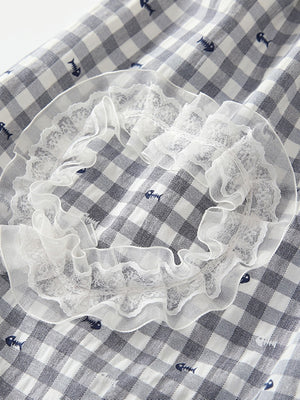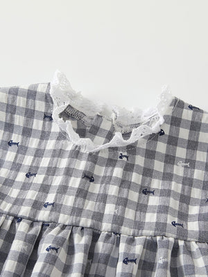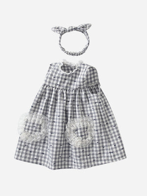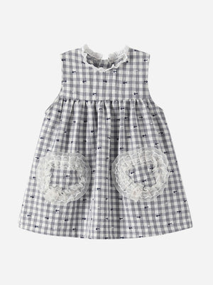 Grey Round Neck Casual A-Line Checked Sleeveless Knee Length Cotton Dress