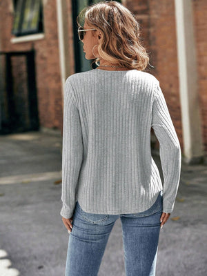 Grey Round Neck Colourblocked Long Sleeves Polyester Top