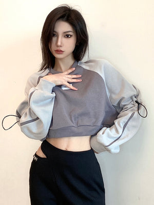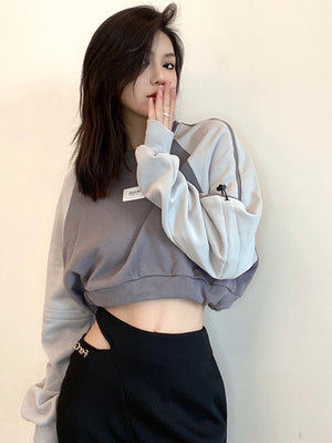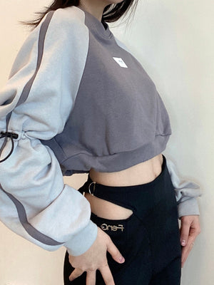 Our grey round neck long sleeves colourblocked cotton top is a versatile piece you can dress up or down. The V-Neck silhouette provide a sleek, sophisticated look. Wear it with trousers for work or a skirt for going out.