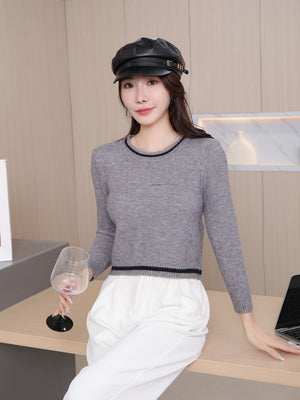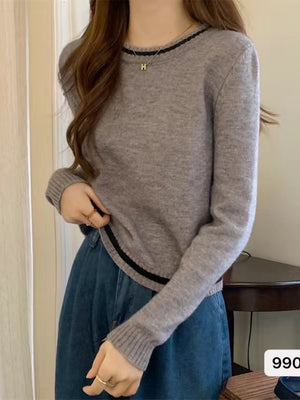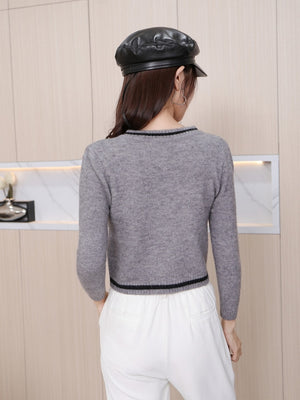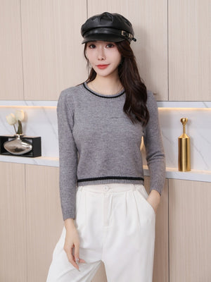 Grey Round Neck Long Sleeves Solid Regular Sleeves Acrylic Top