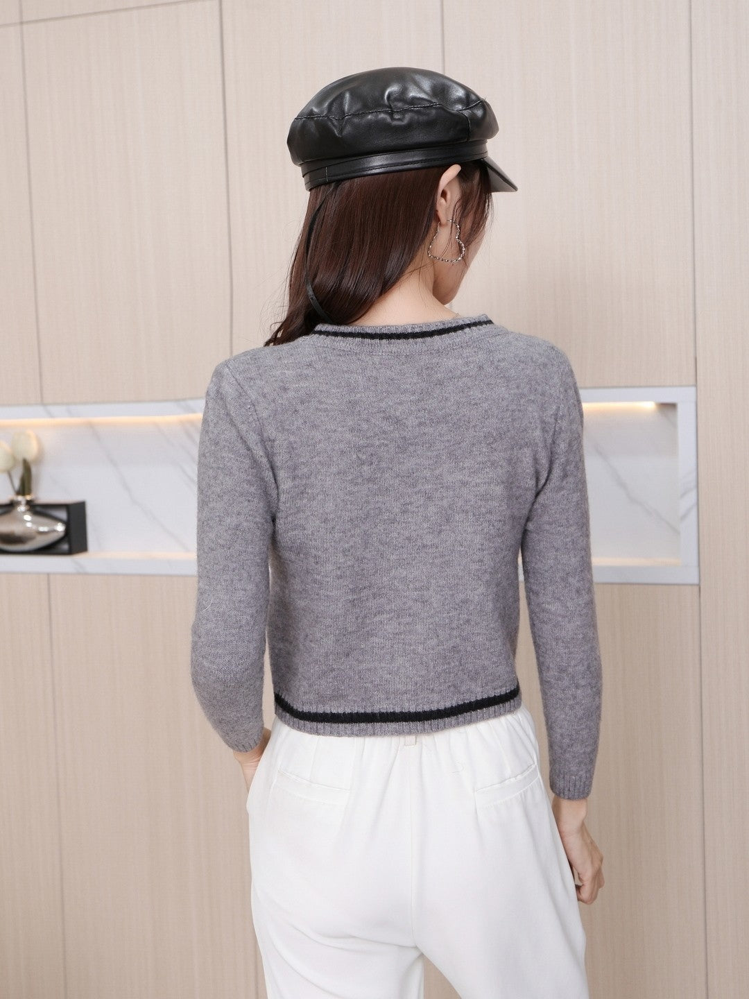 Introducing our Grey Round Neck Long Sleeves Solid Regular Sleeves Acrylic Top, a stylish and versatile addition to your wardrobe. Made from high-quality acrylic fabric, this top offers a comfortable and breathable fit. The round neck design adds a touch of elegance, while the black color provides a timeless and sophisticated look.