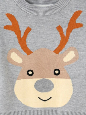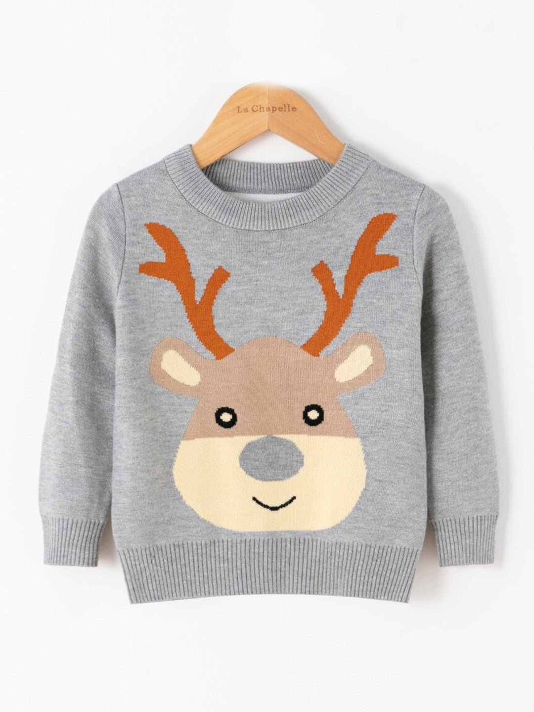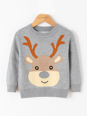 Grey Round Neck Printed Long Sleeves Casual Pullover Viscose Rayon Sweater