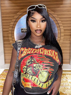 Introducing our Grey Round Neck Printed Sleeveless Polyester Top, a stylish and versatile addition to your wardrobe. Made from high-quality polyester fabric, this top offers a comfortable and breathable fit. The round neck design adds a touch of elegance, while the black color provides a timeless and sophisticated look.