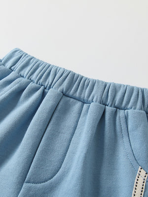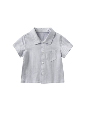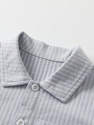 Grey Shirt Collar Short Sleeves Solid Shirt & Shorts Pure Cotton Set