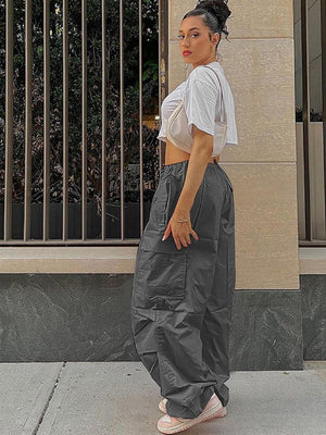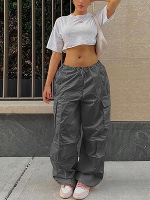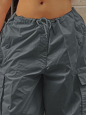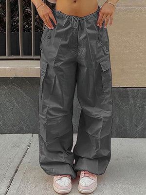 Grey Solid Loose Fit Polyester Trouser