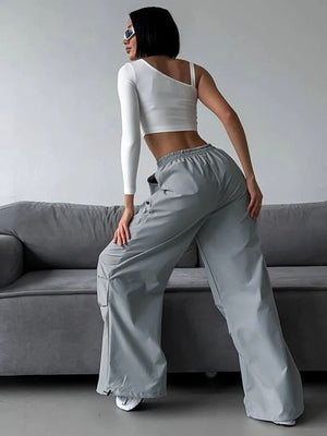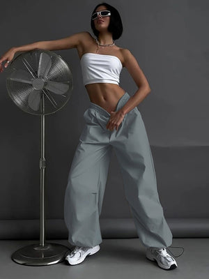 Grey Solid Loose Fit Slip-On Polyester Trouser