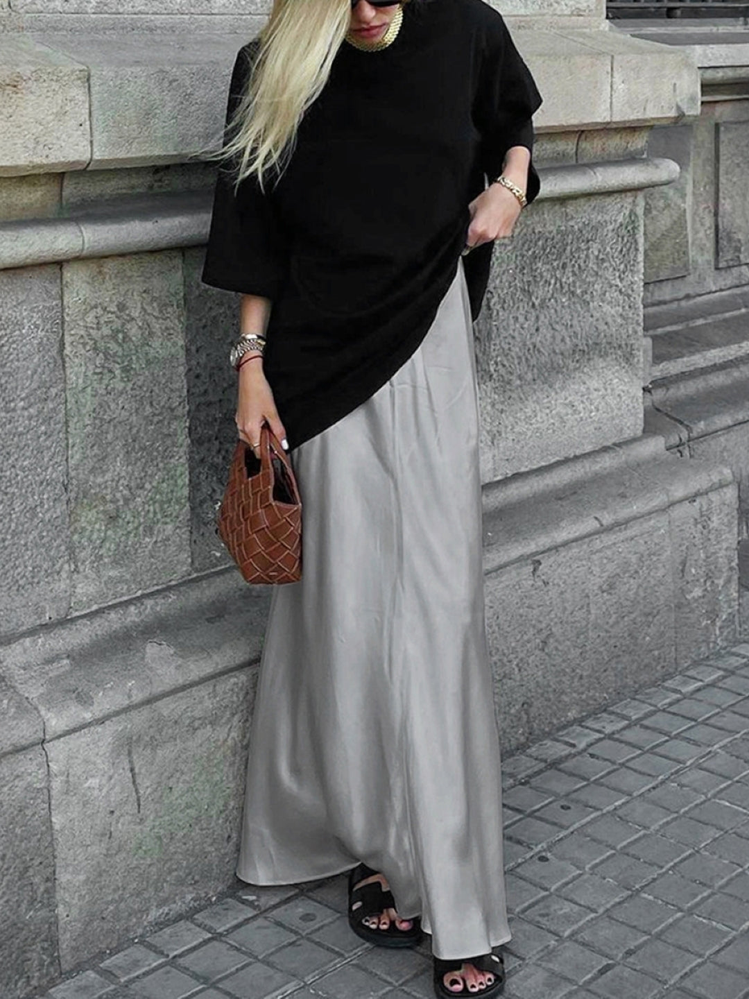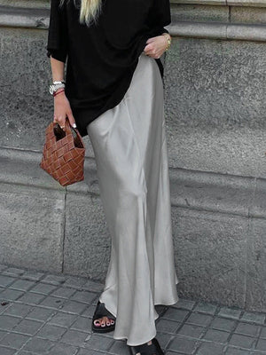 Grey Solid Maxi Polyester Skirt