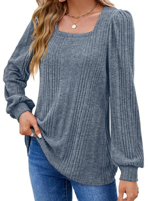 Grey Square Neck Solid Long Sleeves Polyester Top