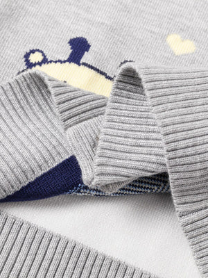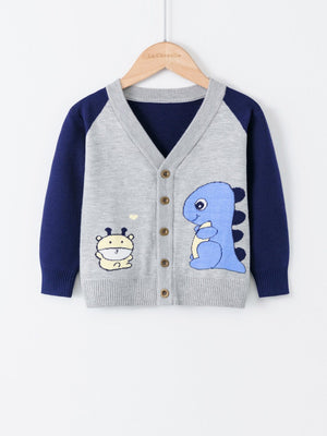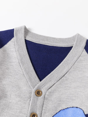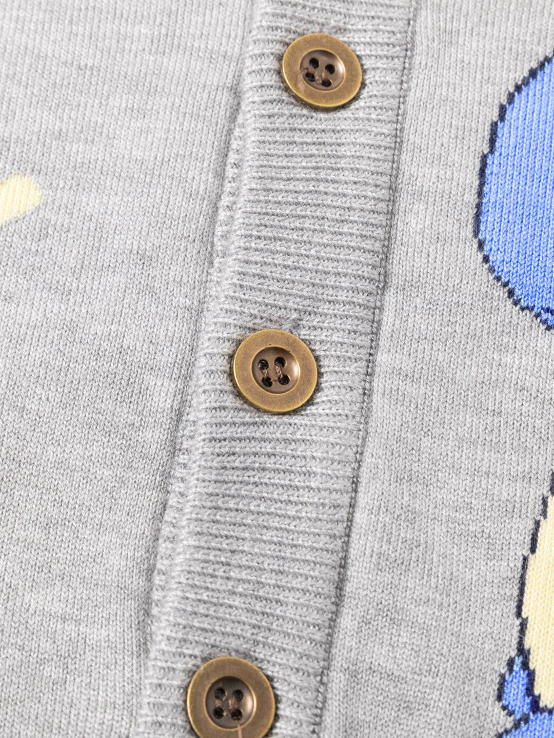 Grey V-Neck Printed Long Sleeves Casual Front-Open Viscose Rayon Sweater