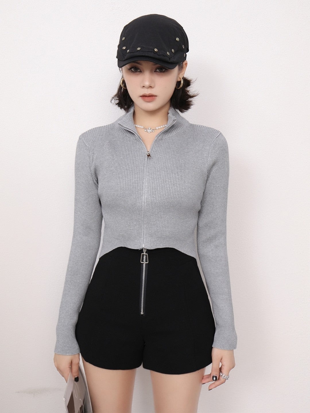 Grey Viscose Rayon Round Neck Long Sleeves Solid Top