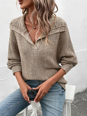 Stay cozy and fashionable with this khaki acrylic V-neck sweater. Its soft material and flattering fit make it a versatile piece for any wardrobe.